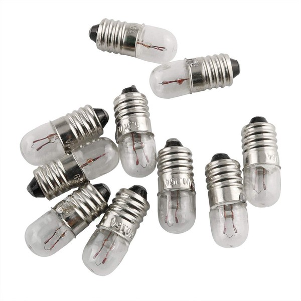 E-outstanding 10pcs E10 Mini Light Bulbs Experiment Screw Base Indicator Light Incandescent Bulb, 6.3V 0.15A