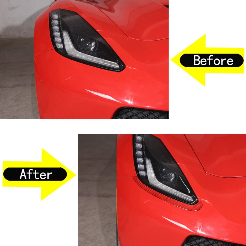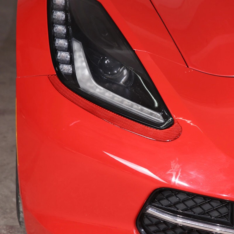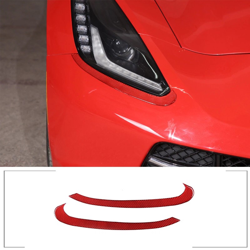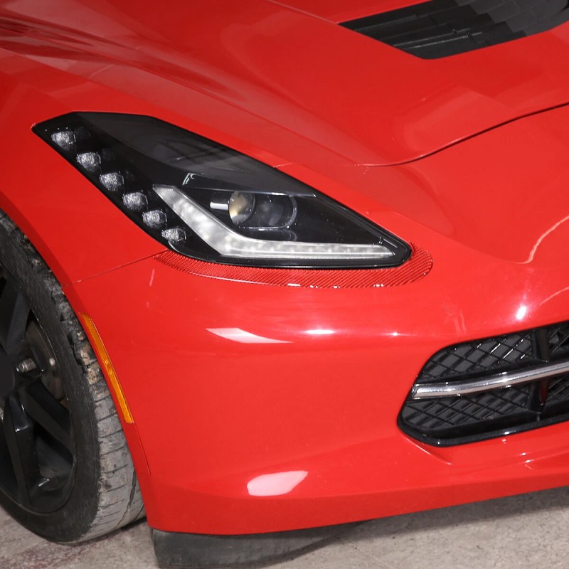 e-power-auto-Trim Fits Corvette C7 2014-19 Headlight Lamp Brow Decorative Sticker Carbon Fiber Red