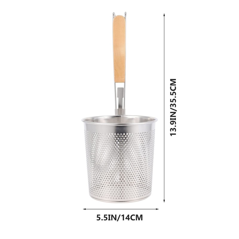 ?e Round Wok Strainer Roasting Basket Stainless Steel Wooden Handle for Heat Resistance Udon Pasta Noodle Ramen Sp¨¹len Straining Cooking Roasting 14 cm