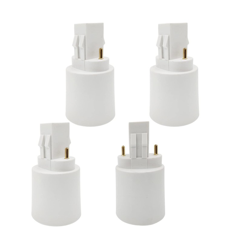 E-Simpo 4pcs Gx23 to E26/E27 Lamp Base Holder Socket Adapter, Refinded Gx23 to E26/e27 Bulb Base Converter CFL PL-S PL-C Bulb Holder Conversion Double Tab.2P in Parallel (4-Pack)