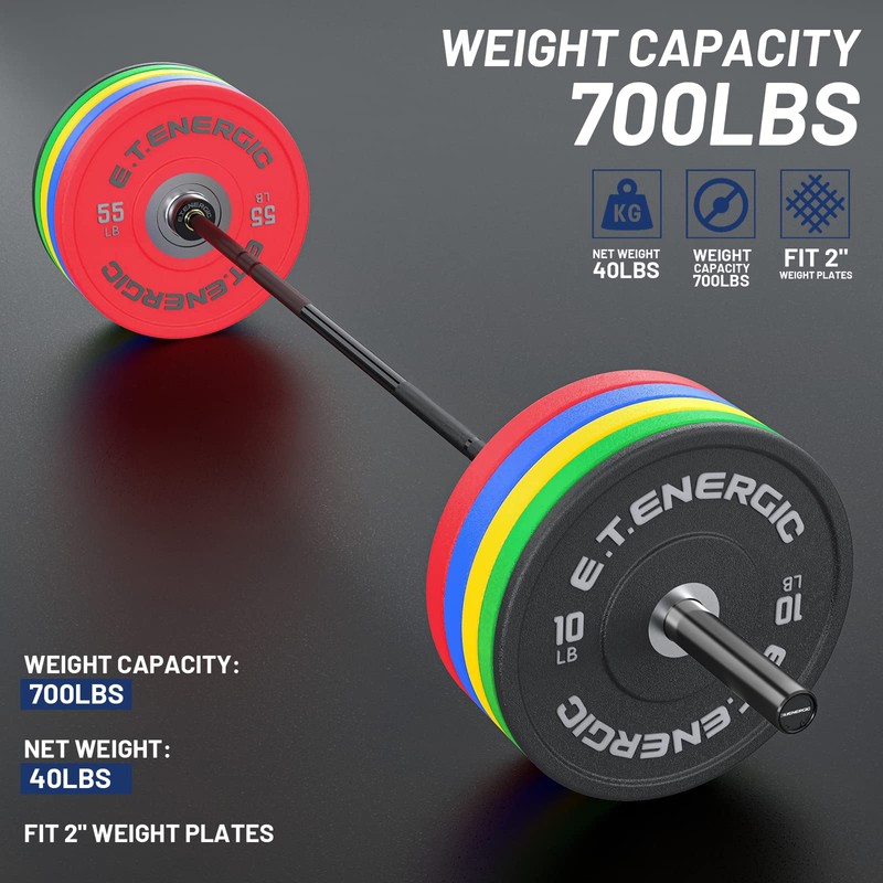 E.T.ENERGIC 7ft Olympic Barbell Bar 40lbs Black Hard Chrome, Sleeves for 2" Olympic Plates(700-lbs Capacity), for Weightlifting, Powerlifting, Gym Home Exercises