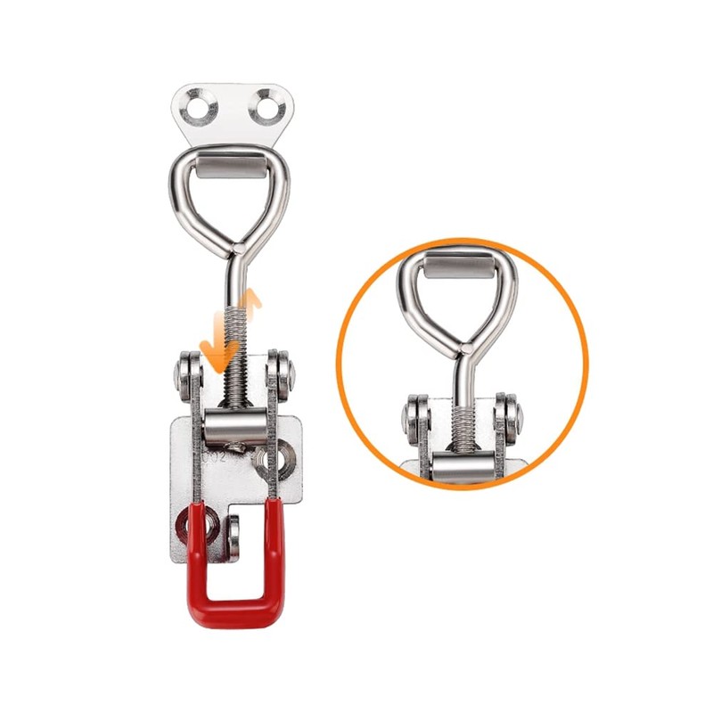 - Widely Used: The heavy duty toggle latch perfectly fits the freezer door, cabinet doors, garbage cans, table leaf, storage box, tool boxes, cases, smoker lid, sliding doors, trailer tailgates, etc. Our clamps are a great helper for you in making jigs, tool fixtures, work fixing, connecting moving parts, and tensioning two sections.
