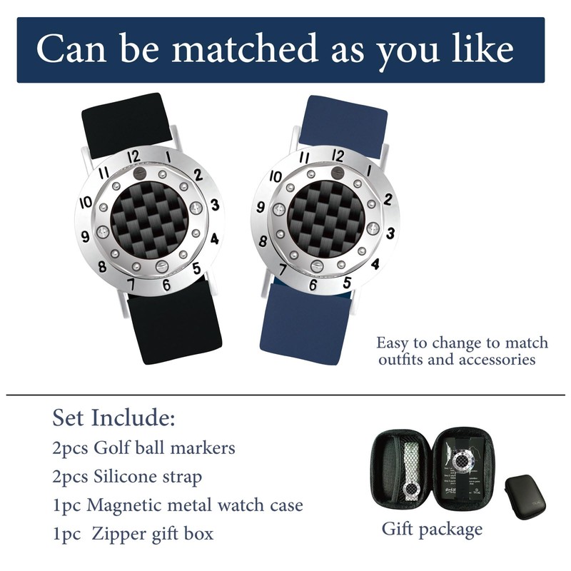 - 🏌️ GOLF GIFTS: Special Carbon Fiber material ball marker, Fashion, unique, elegant, personalized design. Quality zipper box package. Set of golf ball markers and golf shot counter watch. (Size:3.2 inch x 4.5 inch x 1.3 inch) Golf gifts for men women golfer