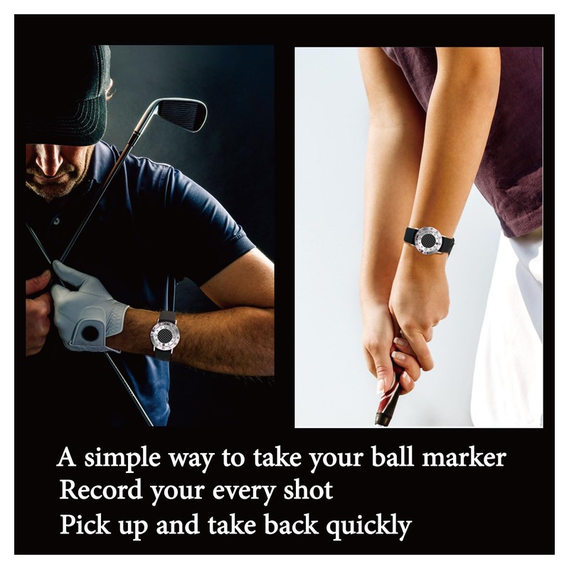 - 🏌️ METAL CASE –Strong magnetic golf ball marker case with special technology, Made by premium zin alloy. Unisex, Case size: Dia 1.3 inch (33mm) x 0.16inch (4mm) D Silicone Strap size: 0.7inch (18mm) W x 9.6inch (245mm) L
