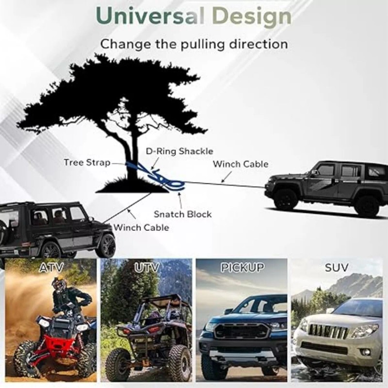 - 【Snatch Block】This 10 ton snatch blcok kit Made of quality steel , compatible with 7/32'' - 3/8'' steel cable or synthetic rope. Its surface is treated with electrophoretic paint, suitable for most off-road rescue situations.