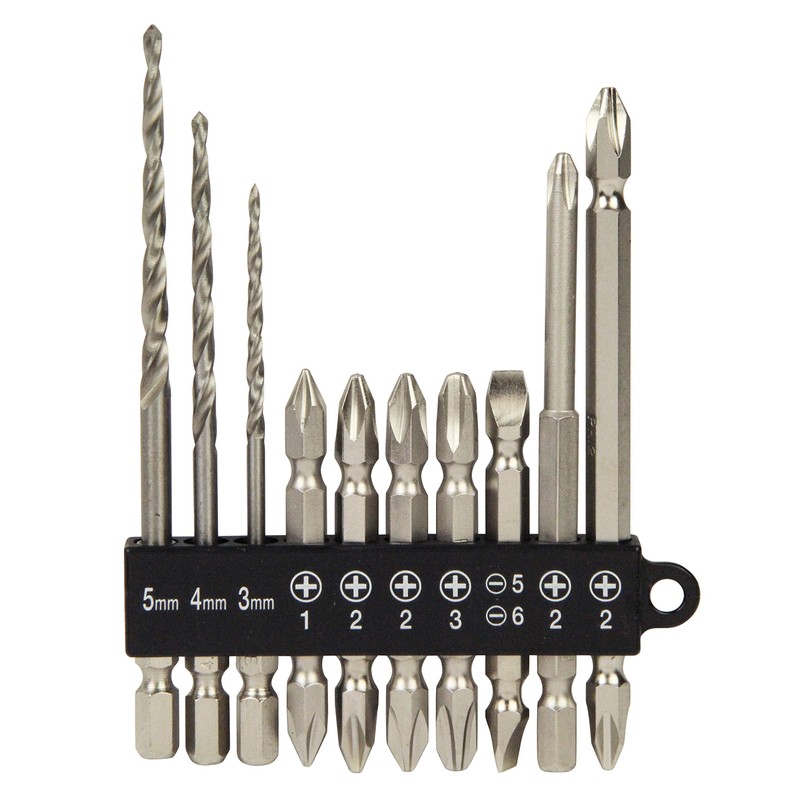 - Set Includes: Bits (+1 x 65 mm, +2 x 65 mm (2 pieces), +3 x 65 mm, +2 x 110 mm, -5-6 x 65 mm, +2 x 100 mm (tiers) ), drill for punching holes (0.11, 0.2, 0.2 inches (3, 4, 5 mm)