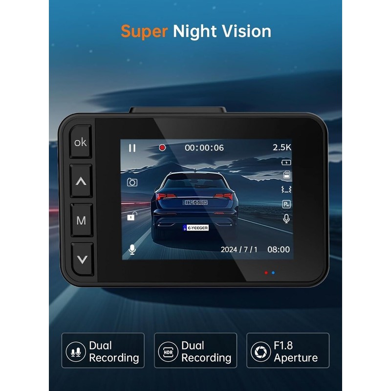 E-Yeeger 2025 Dash Cam Front and Rear, 2.5K+1080P Dual Dash Camera,2"Scree