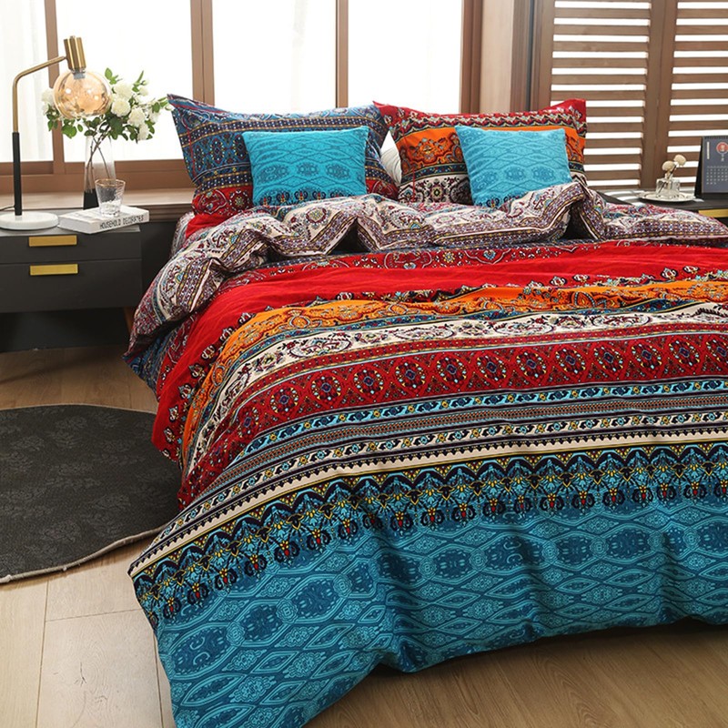 E-yimeng Single Duvet Cover Sets Boho Bedding Sets Red Duvet Covers Colorful Bohemian Bedding Collections with 1 Pillowcase Zipper Luxury 135x200 cm
