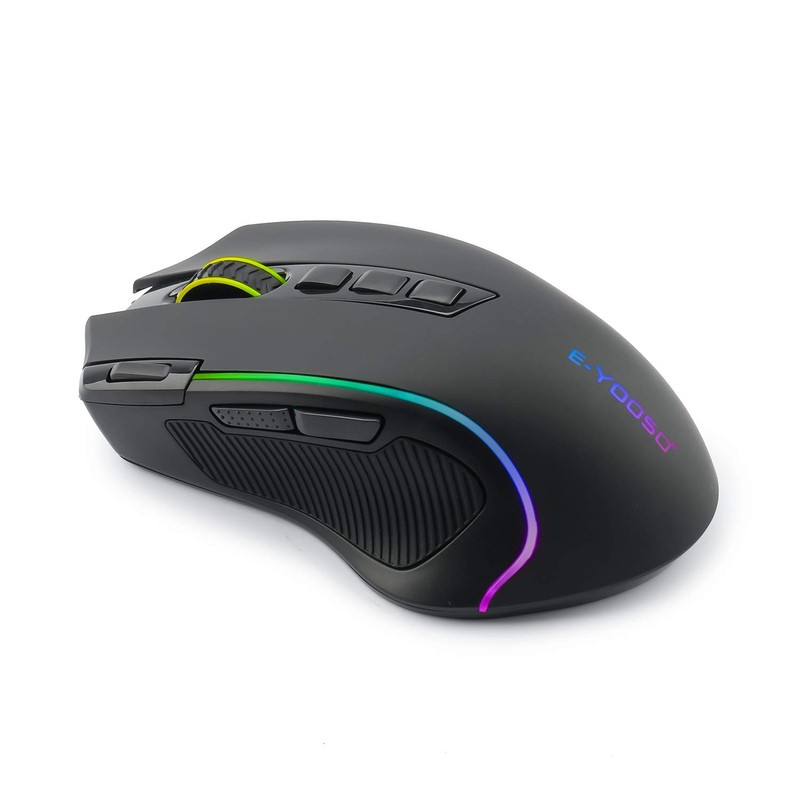 E-YOOSO X-11 Wireless Gaming Mouse, RGB Backlit, MMO 9 Programmable Buttons, with Macro Recording Side Buttons, Rapid Fire Button for Windows Computer Gamer, Black