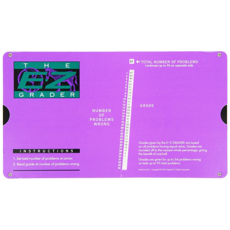 Take the guesswork out of grading- with this super-handy grader! Simply set the total number of problems in the window at the top of the grader, find the number incorrect problems and read the grade- eliminating all calculating and any possibility of error.