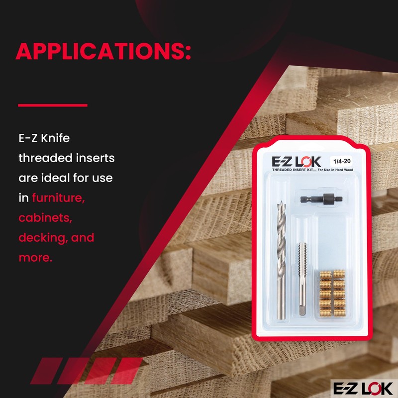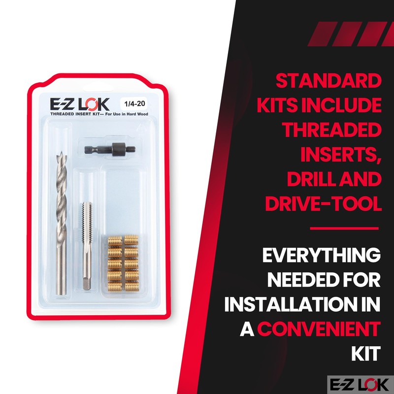 - THREAD INSERT KIT FOR HARD WOOD - E-Z LOK Threaded Insert Installation Kit is your all-in-one comprehensive go-to thread repair kit for creating strong, threaded joints in hard wood.