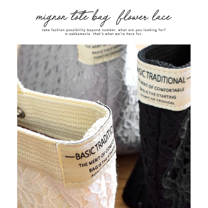 E Zaccamania Stores Women's Flower Lace Mignon Tote Bag, Mini, Black