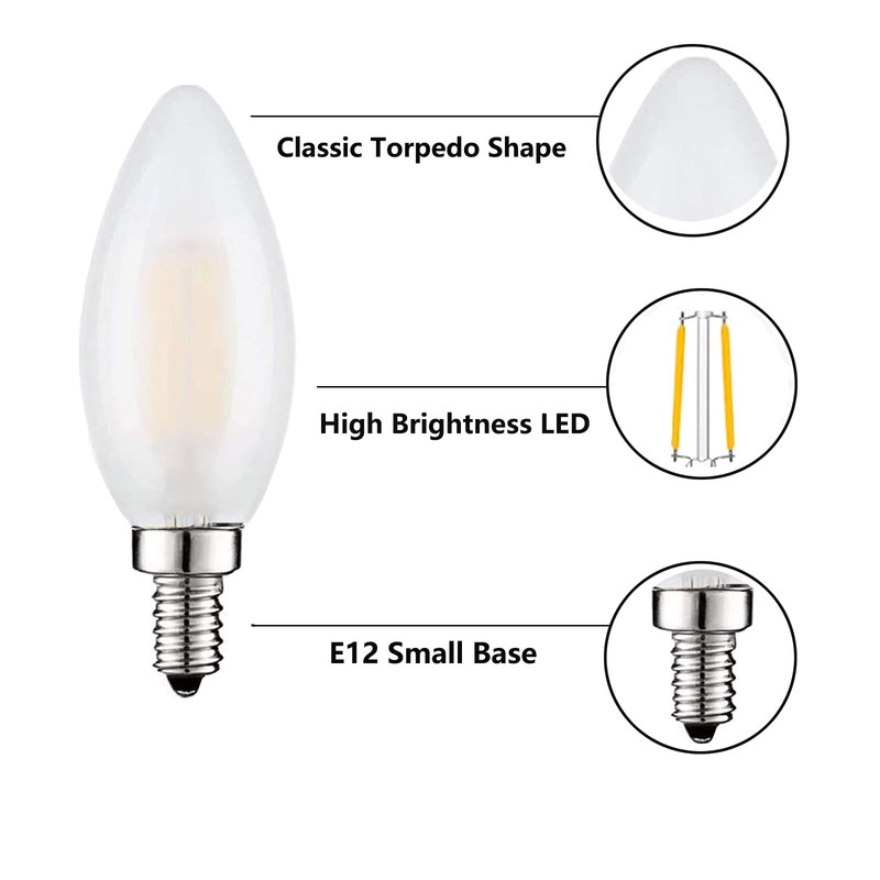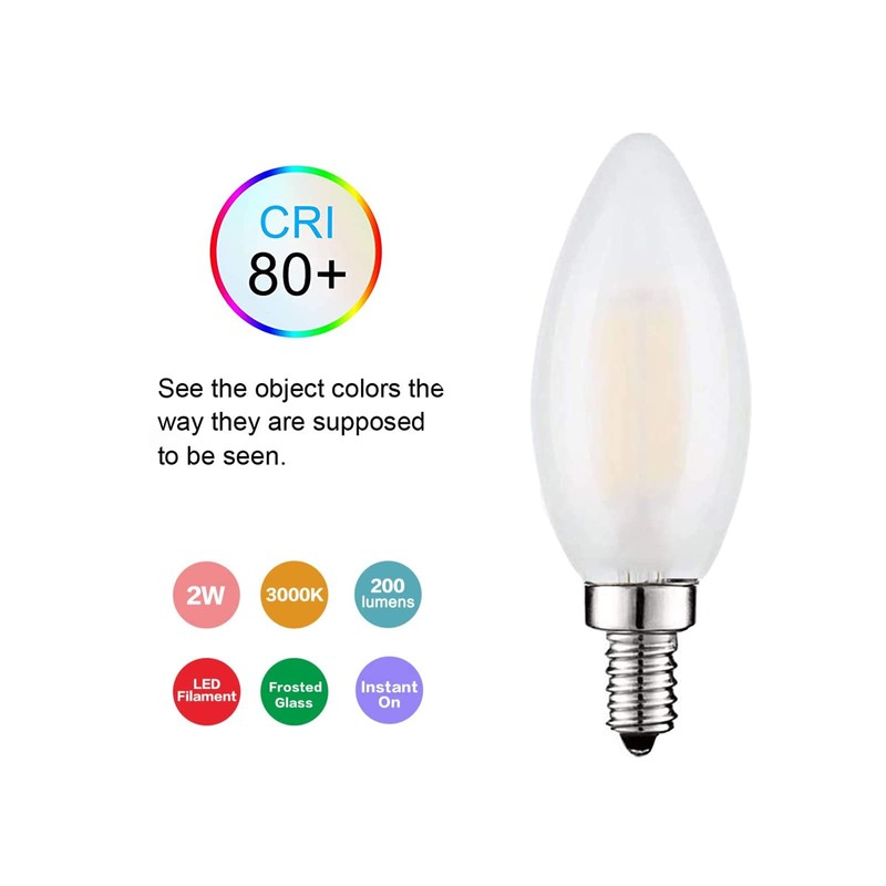 - Package Included: 6pcs x B11 E12 2W 3000K frosted glass bulb
