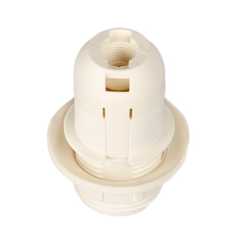 E14 lamp holder (PBT), threaded socket (short version) with mounting ring, white (RAL 9003)