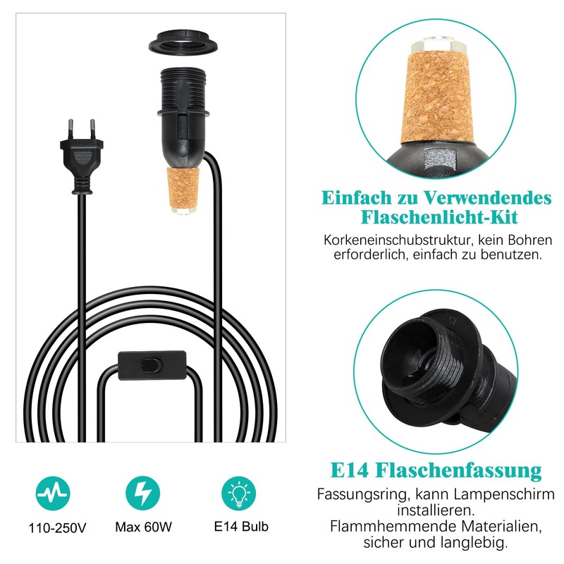 --Embrace the art of recycling and illuminate your home with talent! The E14 bottle light kit is perfect for DIY enthusiasts and anyone