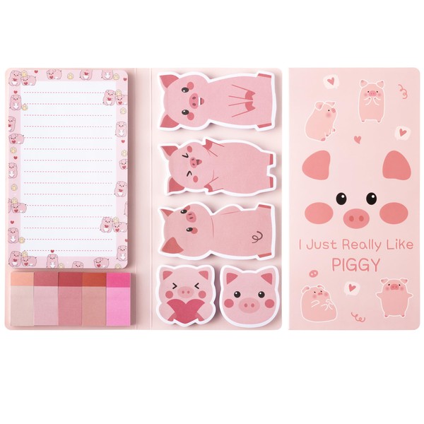 E1mity Cute Pig Sticky Notes Set - 550 Sheets Kawaii Pink Piggy I Just Really Like Pig Self-Stick Paper Clips Memo Pads Page Marker for Kids Home Office School Supplies Gift