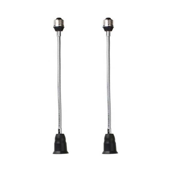 E26/E27 40cm/16 inch Extension Socket Extender Adapter, E26 to E26 Flexible Extension, All-Directional Adjustable Standard Medium Light Bulb Socket Converter,Black (2 Pack)