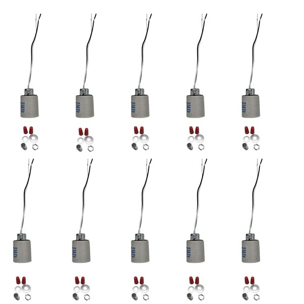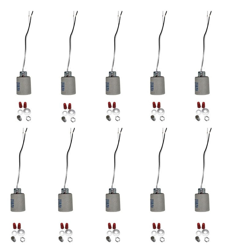 E26 E27 Ceramic Light Socket Standard Medimun Screw Base Bulb lamp Holders 5Pcs 10PCS with Wires for Hot Halogen Bulbs (10PCS)