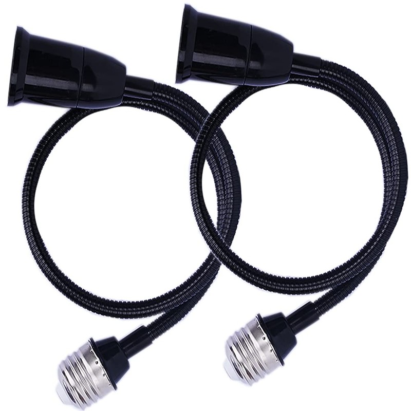 - 【FLEXIBLE NECK】High adjustability! E27/E27 light socket extender adapter With 58CM/22.5inch flexible gooseneck is easily rotating 360 degrees in all directions to find the perfect angle. Provide a nice strong gooseneck that can easily be flexed and perfectly hold up a lightbulb.Flexible Length: Approx.58cm, 50 cm extra large hose .