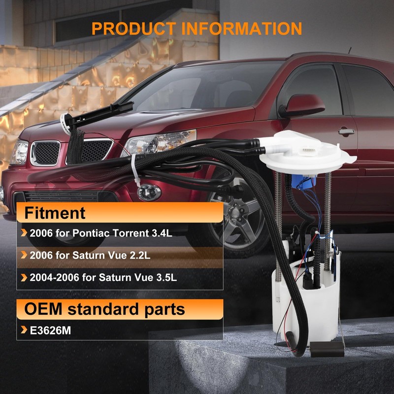E3626M Fuel pump assembly - Compatible with 2005 2006 for chevy Equinox 3.4L 2006 for Pontiac Torrent 3.4L 2004-2006 for Saturn Vue 3.5L Electric Fuel Pump MU1526 P76263M SP6605M SP6768M