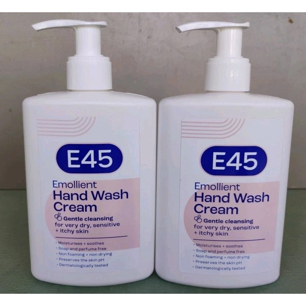 E45 Emollient Hand Wash Cream 250ml 8.5oz 2-Pack Exp 07/2026