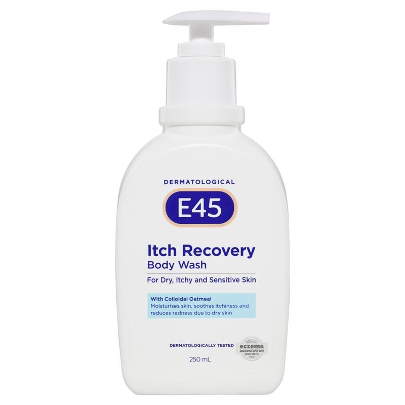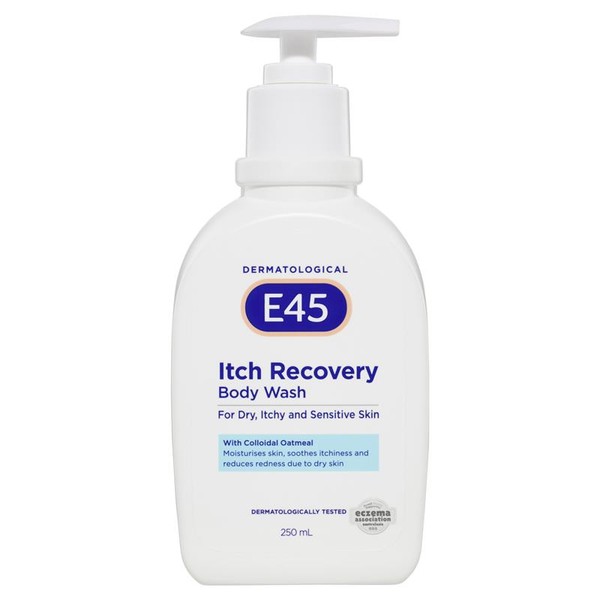 E45 Itch Recovery Moisturising Body Wash is formulated for dry, itchy and sensitive skin. A nourishing formula containing colloidal oatmeal known to calm the skin, soothe itchiness and reduce redness due to dry skin. Dermatologically tested, pH balanced, mild formulation that is made in Australia. Available in lotion and wash.Size: 250mL