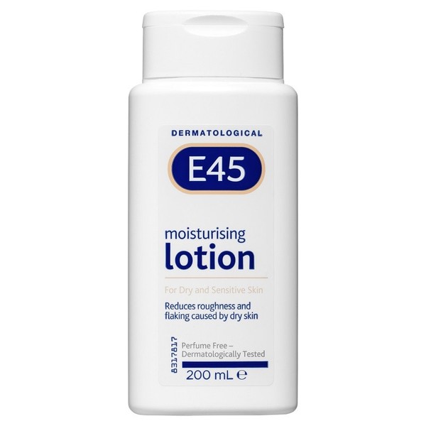 E45 Moisturising Lotion reduces roughness and flaking caused by dry skin.