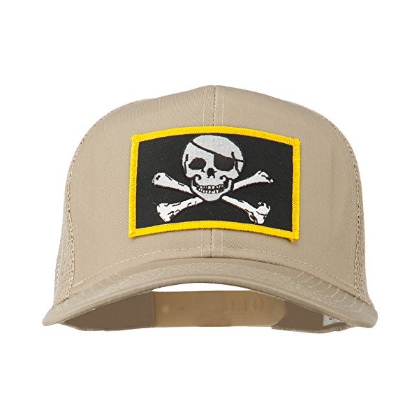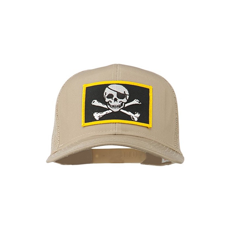 e4Hats.com Jolly Roger Skull Patched Mesh Cap - Khaki OSFM