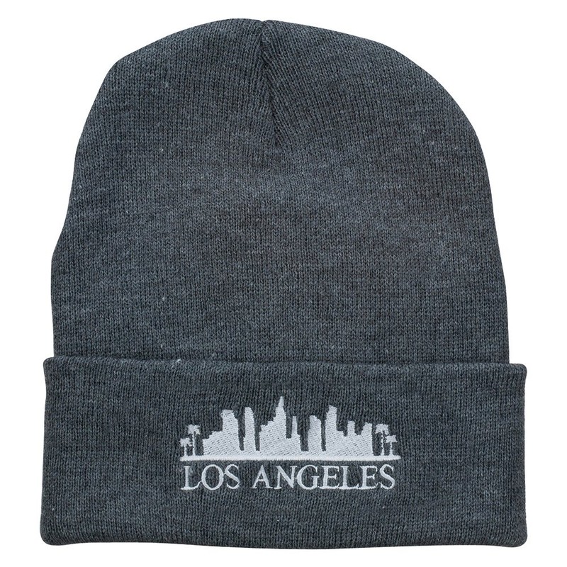 e4Hats.com Los Angeles Skyline Embroidered Long Beanie - Dk Grey OSFM