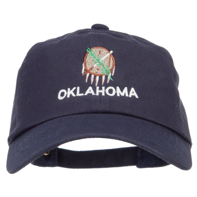 e4Hats.com Oklahoma State Flag Embroidered Unstructured Washed Cap - Navy OSFM