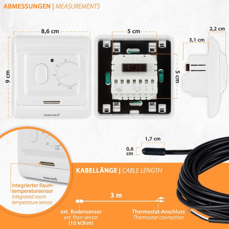 - Temperature switch ideal for infrared heating, electric heating, heating plates, surface heating, terrarium heating; room thermostat for heating electric underfloor heating radiators