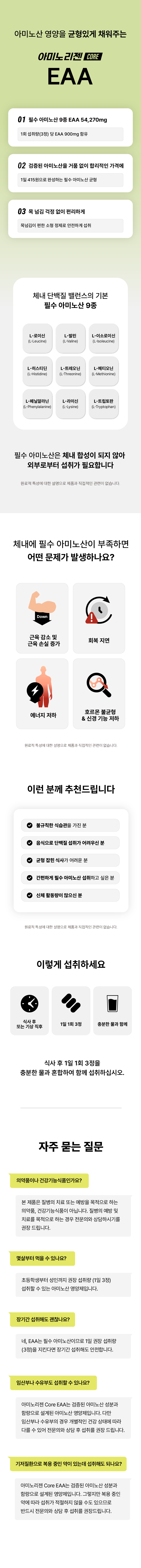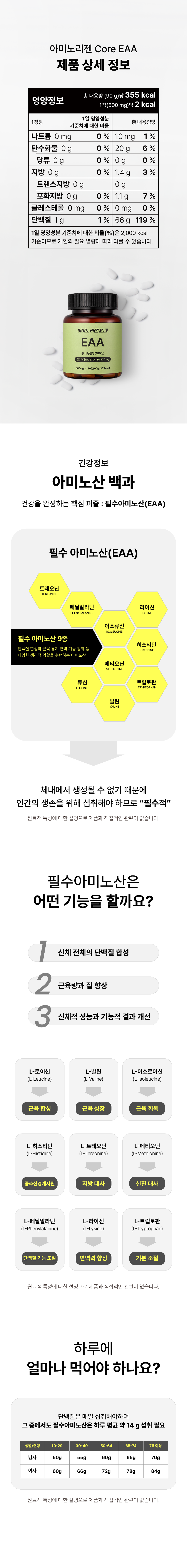 아미노리젠 코어 EAA 필수 영양소 아미노산 영양제 180정 x 1개