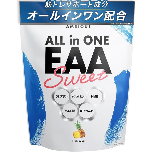 オールインワンEAA BCAA クレアチン グルタミン クエン酸 HMB アンビーク 必須アミノ酸9種配合 国産 (620g, パイナップル)