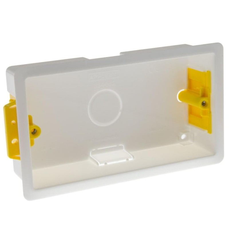 ÉABCON 35mm 2 Gang Dry Lining Back Box, Plasterboard Pattress Box, Adjustable Lugs (1)