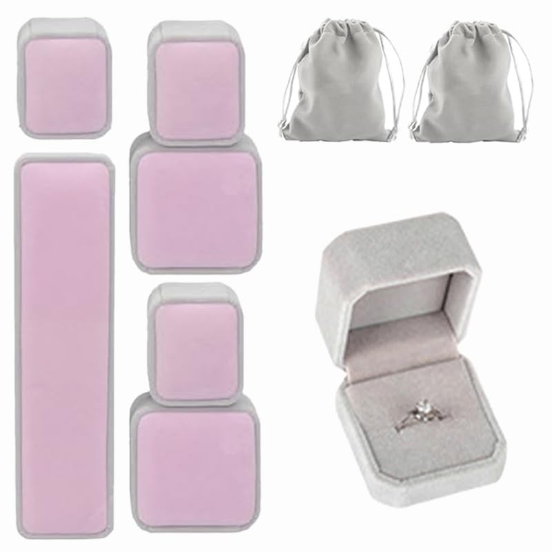 Eabdice Set of 6 Ring Boxes, Velvet Jewellery Gift Box, Velvet Ring Box, with Two Storage Pockets, Suitable for Marriage Proposal, Wedding, Valentine's Day, Birthday