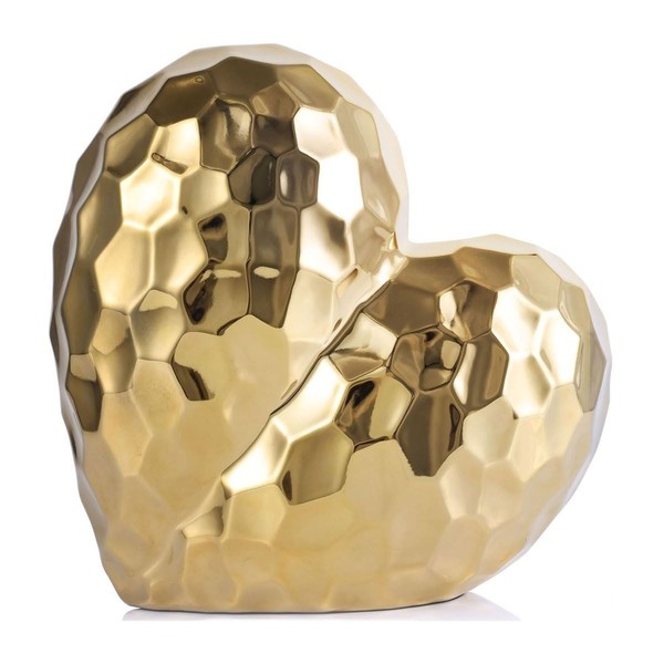 Eachave Gold Ceramic Heart Sculpture - Wedding Table Decoration, Office Desk Decor, Living Room Accent - Romantic Gift for Couples, Height 8 Inches