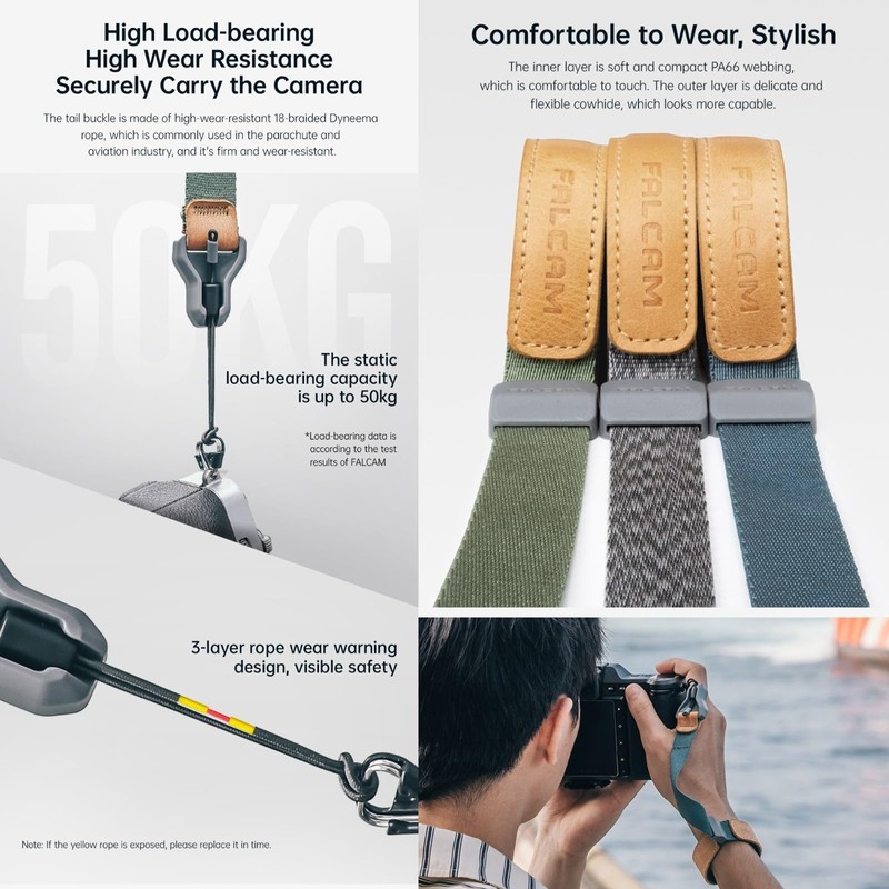 * Load capacity data corresponds to FALCAM test results. Warm Tips If the yellow rope is exposed, please replace it in time.