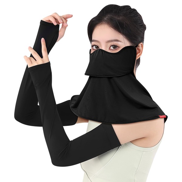 [Eadali] 夏用UVフェイスカバー&アームカバー 指掛け付きセット|通勤 通学 日焼け防止マスク 冷感素材 UPF50+ 紫外線対策 吸汗速乾 レディース メンズ兼用