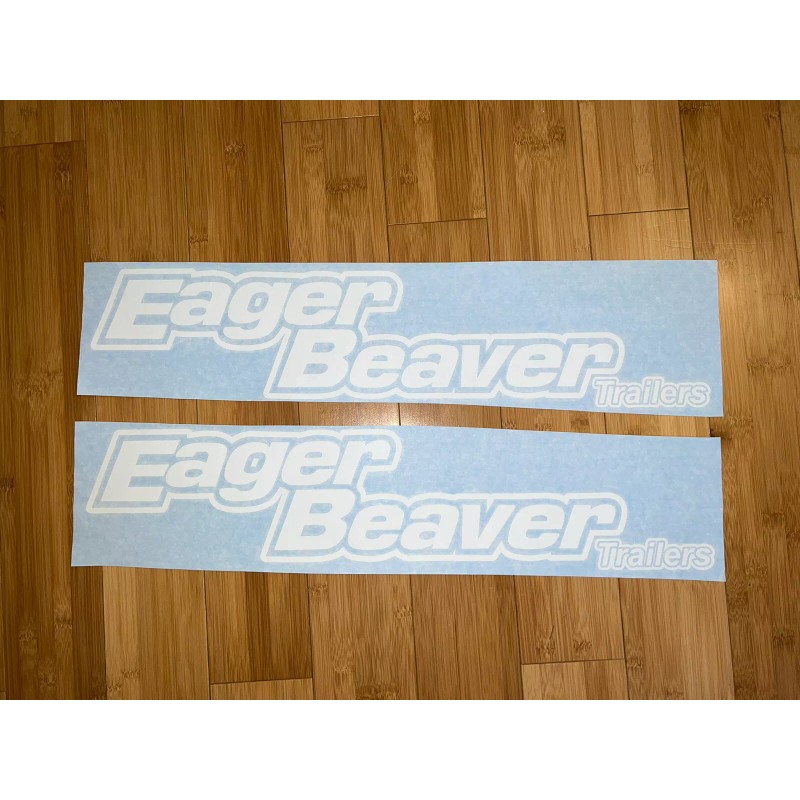 Eager Beaver Trailers Replacement Stickers 36”(Set Of 2) White Decals Logo Equip