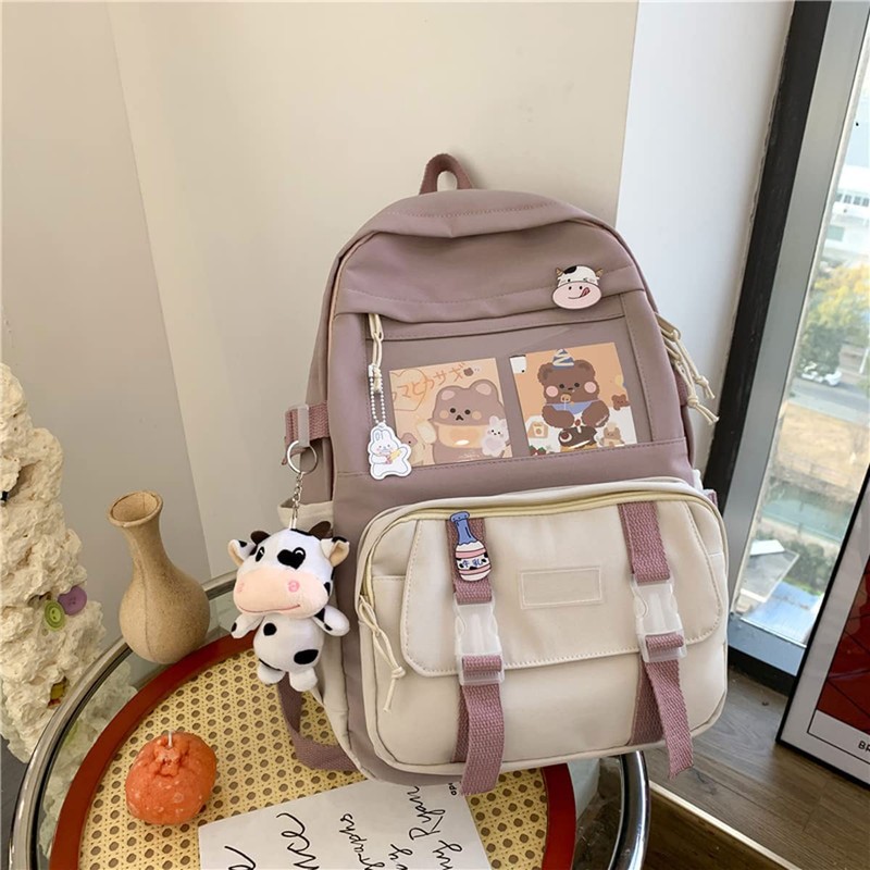 Eagerrich Backpack with Cute Pin Accessories Plush Pendant Lovely Pastel Rucksack for School Bag Student Teen Girls Aesthetic Student Bookbags Super-Capacity Waterproof Travel Backpack(Purse-4)