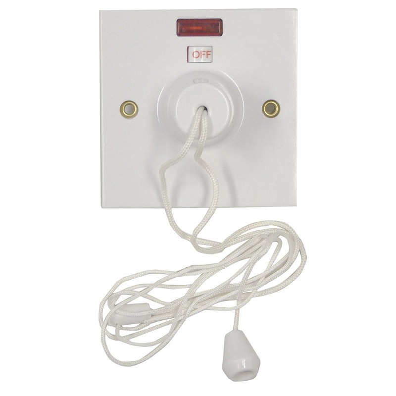 - 45 A ceiling pull switch with neon and OFF/ON indicator.