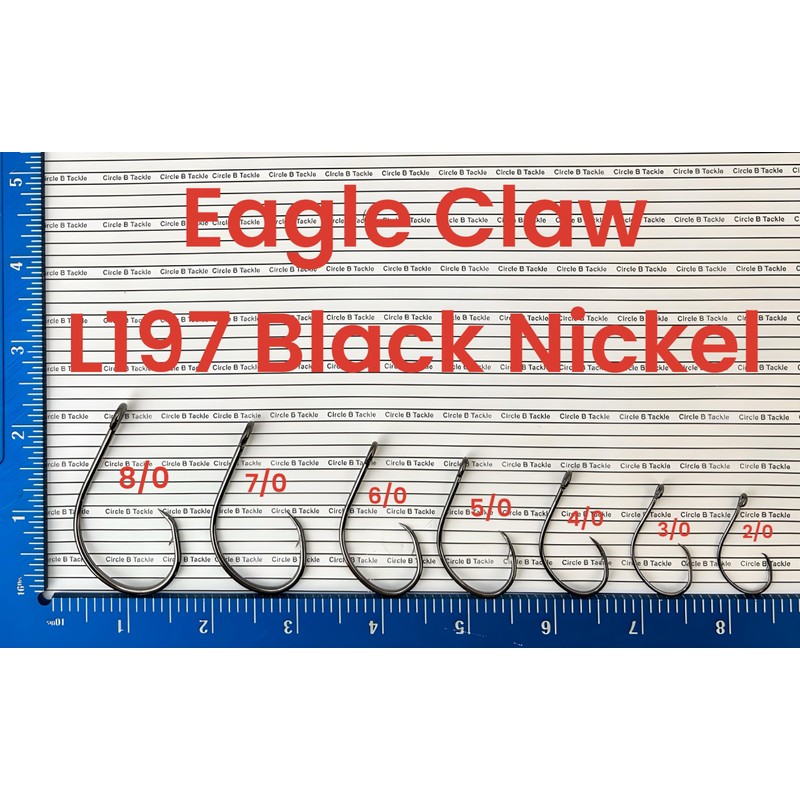 Eagle Claw L197 Circle Hook Platinum Black Finish, Offset Circle Hook Sizes 2/0 to 8/0 in 50 and 100 Packs (Eagle Claw 197 Black 2/0-100 PK)