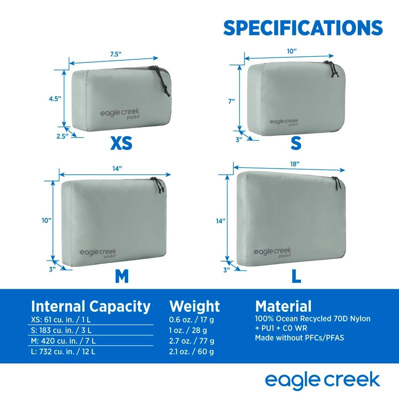 Eagle Creek Pack-It Isolate Cube Large Packing Cubes for Travel Made with Durable Water-Resistant Nylon, Self-Repairing Zipper & Quick-Grab Handle Storm Grey -Isolate (New)