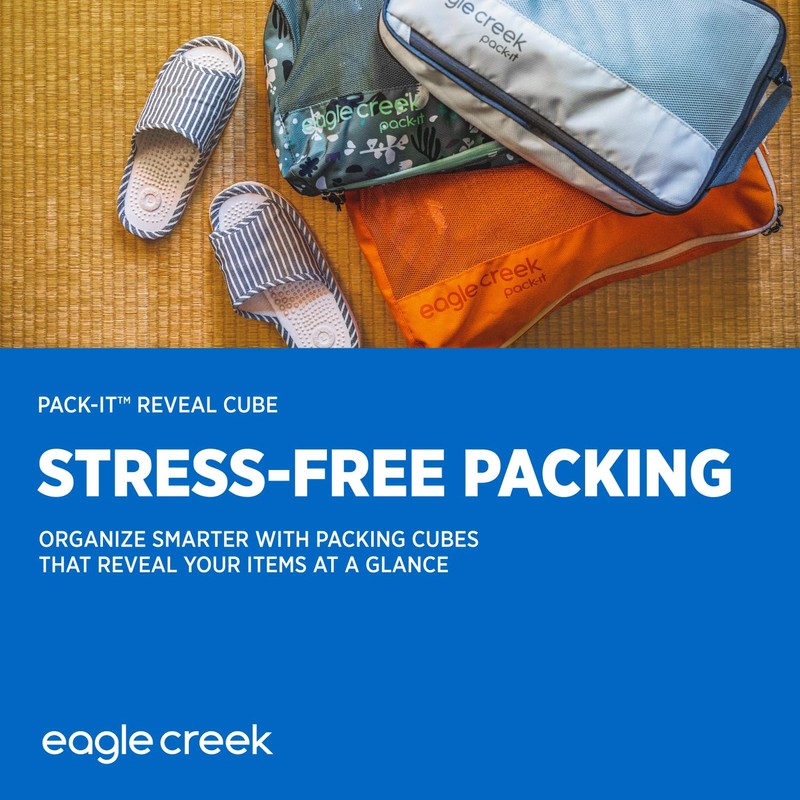 Eagle Creek Pack-It Isolate Cube M - Medium Packing Cubes for Travel Made with Durable Water-Resistant Nylon, Self-Repairing Zipper & Quick-Grab Handle Black -Reveal (New)