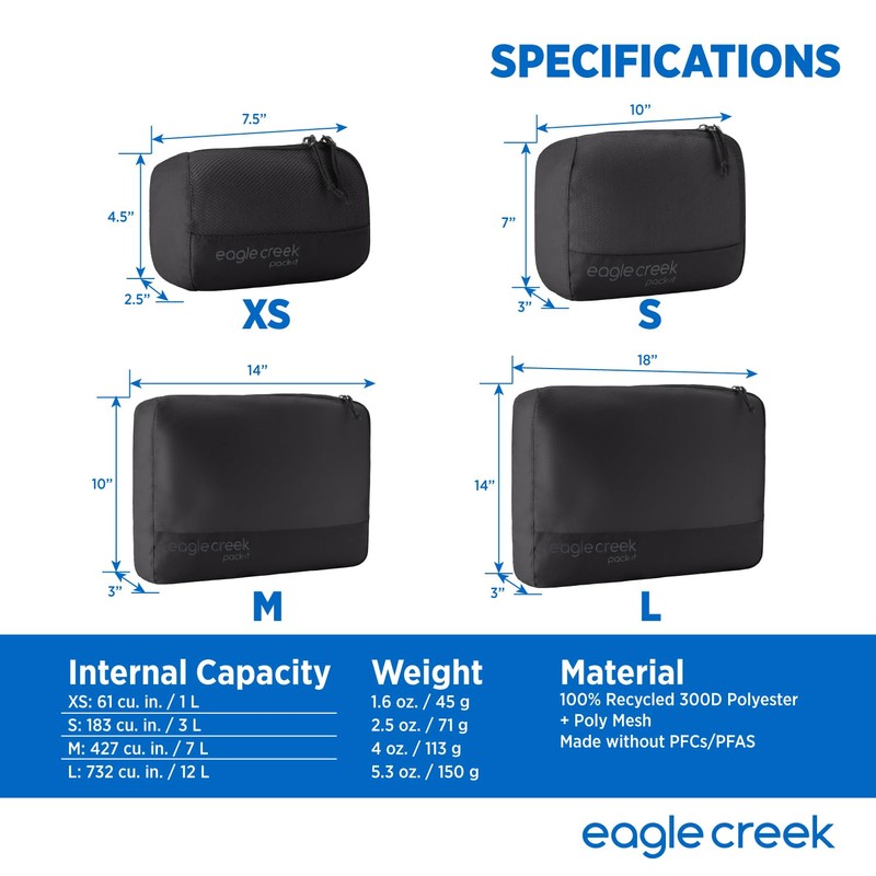 - DURABLE AND WATER-RESISTANT travel cubes made with tough but lightweight 300 Denier poly fabric that is 100% post-consumer recycled and Bluesign-certified