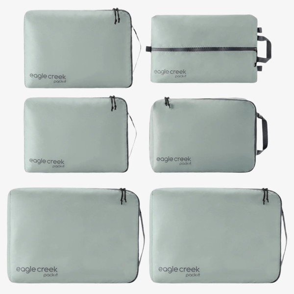 Eagle Creek Pack-It Isolate Extended Stay Set - Includes Shoe Sack, M Clean/Dirty Cube, 2x M Isolate Cube & 2x L - Travel Essentials - Storm Grey