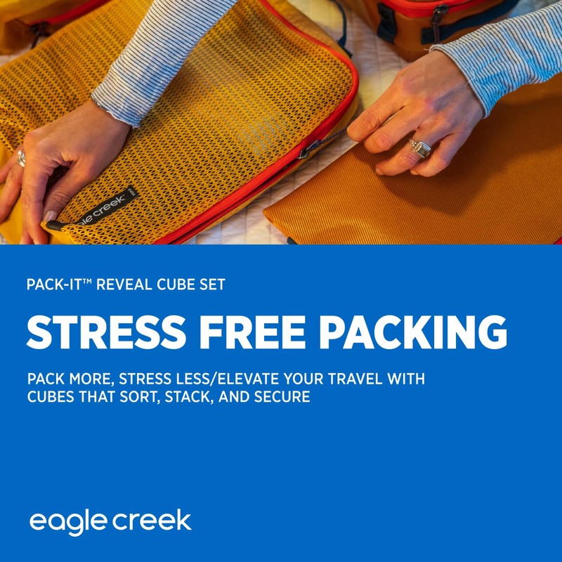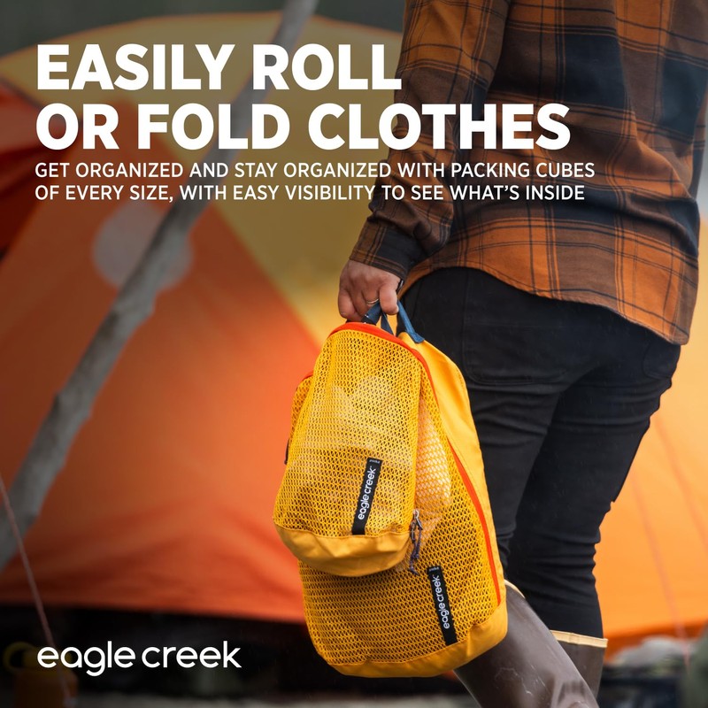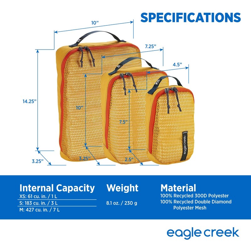 Eagle Creek Pack-It Reveal Packing Cubes Set XS/S/M - Durable, Ultra-Lightweight, Water-Resistant Ripstop Fabric Suitcase Organizers with Mesh Windows, Sahara Yellow