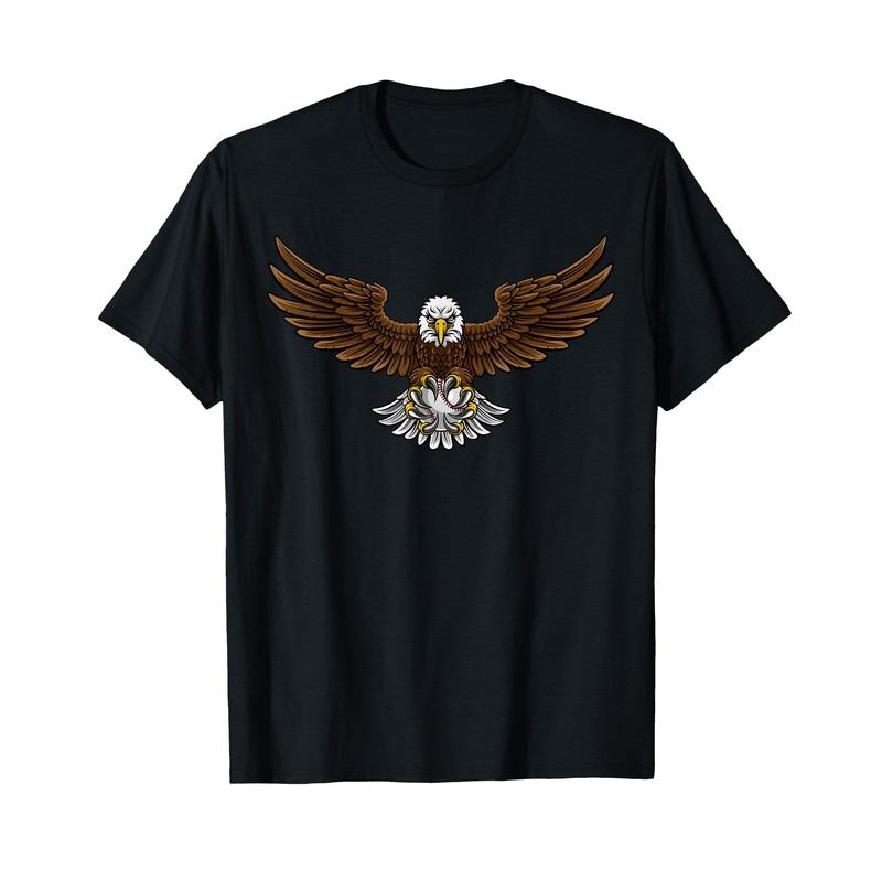 Eagle Holding Baseball Cartoon Character T-Shirt