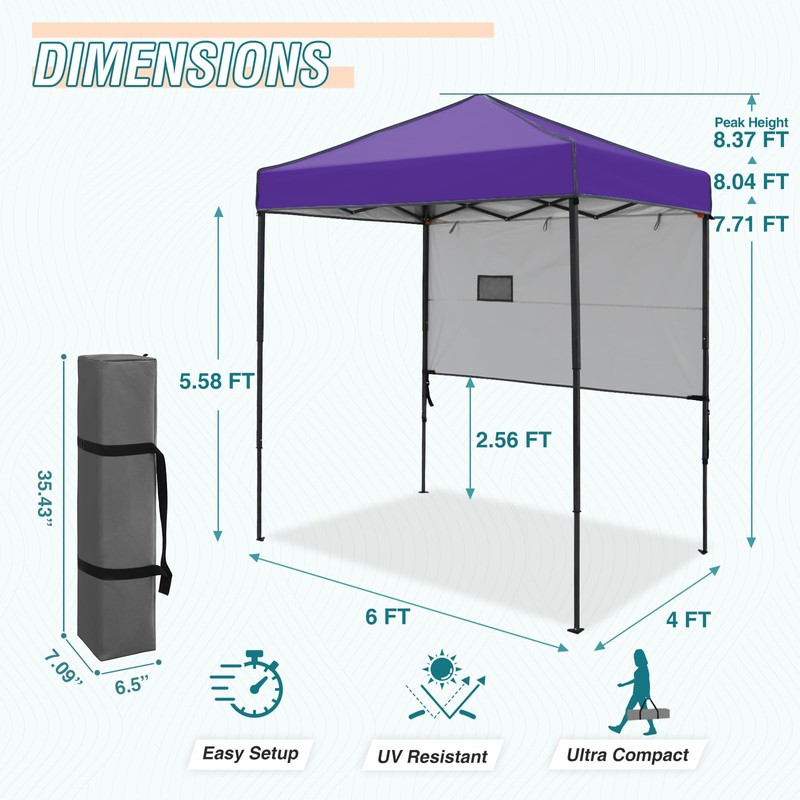 EAGLE PEAK Instant Pop Up Canopy with Adjustable Sun Wall 6x4, Straight Lightweight Compact Portable Tent with Carry Bag, Purple