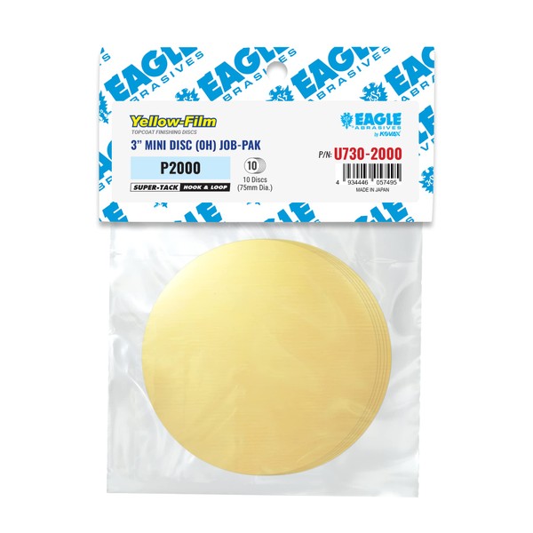 Eagle U730-2000 - 3 inch SUPER-TACK Yellow Film Discs - Grit P2000 - (Job-Pak) - 10 Discs/Pack - 1 Pack
